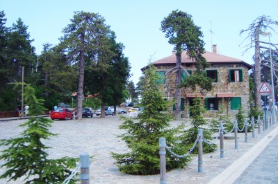 Поселение Троодос в горах Кипра. Здесь работают кафе и рестораны, туристические и сувенирные магазины, можно припарковать машину и отправиться в пешую прогулку по окрестностям. Около площади поселения Троодос (Troodos Central Square) нередко назначают встречи. Здесь же можно купить экскурсию на кипрских осликах. Для нужд туристов установлены бесплатные туалеты.